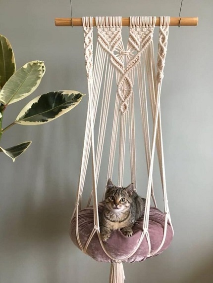 The intricate macrame knots add a touch of bohemian charm to your home décor, while the cushioned seat ensures your cat enjoys maximum comfort. Easy to hang in a living room, bedroom, or near a sunny window, this hammock doubles as both a pet bed and a statement piece.